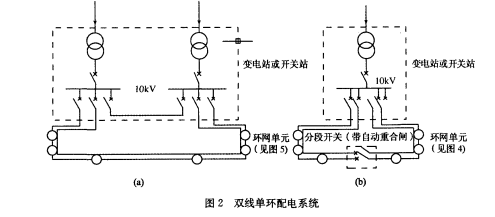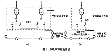 长期以来,我国10kV配电系统,通常采用放射式或树干式配电系统。随着我国建设的发展,用电负荷量的密度迅速增加,上述配电系统已很难适应当前和以后发展的需要。由于环式配电系统能使配电线路简化,减少线路走廊,系统改造和发展灵活,管理方便,以及所使用的环网开关柜(简称环网柜)具有体积小、性能优越、可靠性高、接线简化、操作容易方便、造价低的优点,越来越多地被人们所认识。