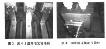 (1)穿墙套管上部与断路器开关静支架联接选用软联接办法,一方面可以去除铜母排硬联接发生的应力,其他还可吸收断路器操作时的分合闸弹跳作用力。