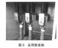 (2)穿墙套管下部与电缆铜搭子导体部分联接选用软联接过渡,如图9所示,可以去除硬联接发生的应力,一起消除电缆通电后发生的电动力,隔绝了对穿墙套管的应力作用。
