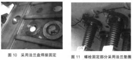 (3)穿墙套管与开关柜底板密封固定部位选用法兰盘焊接固定设备,如图10所示,确保穿墙套管与开关柜底板触摸部分平整无变形。一起螺栓固定部分选用法兰垫圈,如图11所示,确保了螺栓紧固力均匀作用于穿墙套管,然后消除了穿墙套管密封固守时的不均匀固定应力。