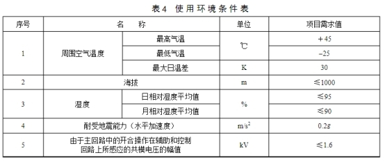 4运用环境条件表低压电缆分支箱运用环境条件见表4。特别环境要求依据项目状况进行编制。