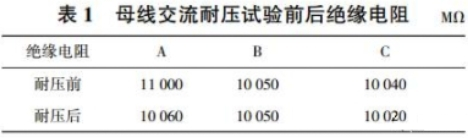 从耐压实验进程和表1绝缘电阻数据来看,该35kV 充气柜母线耐压实验合格。